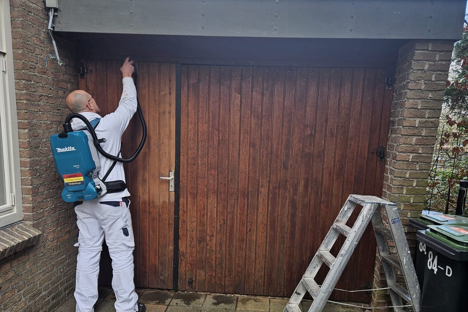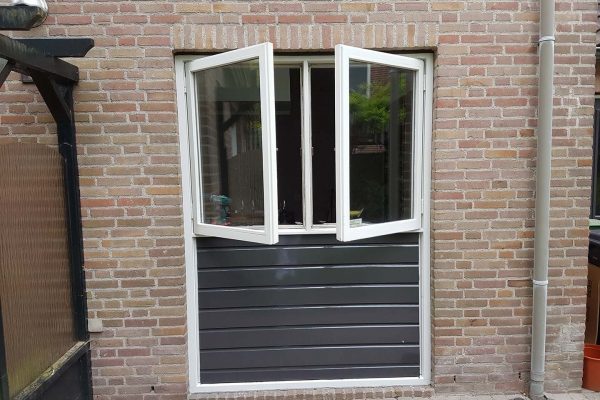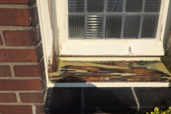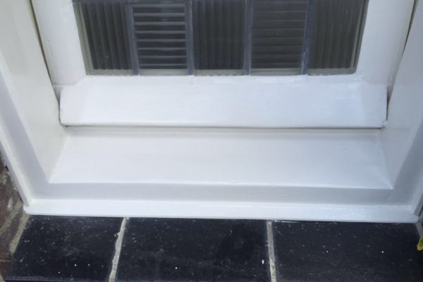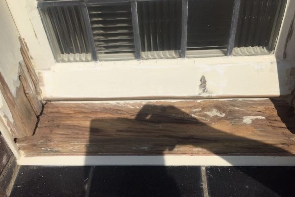 Na de reparatie word het goed geschuurd, om een mooi en strak kozijn te krijgen.